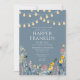 Convites de chá de panela com luzes de cordas e flores silvestres. Personalize o convite com seus detalhes para torná-lo seu!