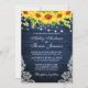 Rústica Azul Madeiras Luzes Aquarela Flor de Girassol e Verde Convite para Casamento