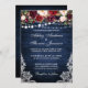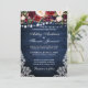 Rústica Azul Lace De Madeira Luzes Borgonhosas Aquarela Convite De Casamento Floral