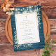 Com belas luzes de cordão e delicadas folhas de folhagem em aquarela sobre um fundo de madeira rústica azul, e um elegante crucifixo dourado, este convite chic para a primeira comunhão pode ser personalizado com suas informações especiais. Criado por Thisisnotme©