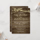 Lâmpada russa e lanternas de corda convite para casamento com efeito brilho luzes brilhantes design sobre velhas planilhas de madeira de celeiro.