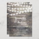 Lâmpadas de madeira e cordas, coleção de convites de casamento. fundo de madeira de cinza de vintage decorado com fio de luz. convite de casamento perfeito para o casamento com luzes noturnas, tema de casamento, tema de celeiro, tema de jardim, casamento ao ar livre com luzes cintilantes.
