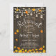 Janto de Ensaio Russo de Queda Convite com padrão de madeira marrom-escura e luzes de fadas de cordas. Possui jarras de pedreiro e folhas de outono. Perfeito para uma festa de estilo rústico. Envie-me uma mensagem se precisar de mais personalização.
