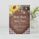 Estes convites de chá de panela apresentam um design de girassol de cor d'água com flores do hálito de bebês sobre um fundo de madeira com luzes de rendas e jarro de pedras. Personalize-os com o seu próprio texto. Itens de suíte de casamento também disponíveis. Visite nossa loja para ver a gama de produtos que você pode personalizar para o seu dia de casamento.