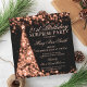 Design de Convite de festas de Surpresa Elegante com Rosa Dourado motif Glitter Confetti, nome e data personalizados e texto adicional. Fácil de usar e fácil de personalizar.