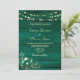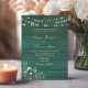 Este convite de casamento romântico na cor esmeralda apresenta uma rica textura de madeira combinada com luzes quentes de corda e delicados acentos florais vintage. O tom esmeralda profundo cria uma atmosfera elegante e sombria, enquanto as luzes cintilantes adicionam calor e charme.