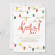 Convide familiares e amigos para a sua festa de Natal com este convite divertido e festivo. Ele apresenta luzes de Natal verdes, amarelas, laranjas e rosadas com padrão de listras. Personalize adicionando nomes, data, hora e outros detalhes do evento. Você pode personalizar ainda mais o verso do convite alterando o padrão para uma foto ou qualquer outra imagem.