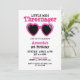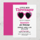 Este design é divertido e brilhante, com óculos de sol cor-de-rosa brilhante em forma de coração. A cor vibrante e o design branco criam uma atmosfera festiva, perfeita para a celebração do terceiro aniversário de uma criança.
