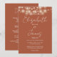 Este convite de casamento com luzes de terracota e tipografia elegante pode ser personalizado com todas as informações especiais do seu casamento no verso, incluindo sua confirmação de presença, acomodação e detalhes adicionais. Criado por Thisisnotme©
