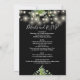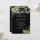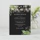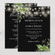 Estas luzes de corda botânicas elegantes de eucalipto em preto e branco para convite de casamento podem ser personalizadas com sua informação em tipografia elegante com todas as informações do seu dia de casamento no verso, incluindo seu RSVP, acomodação e detalhes adicionais. Projetado por Thisisnotme©