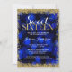 Comemore em estilo com este doce 16 convite moderno, com luzes brilhantes azuis de fundo com uma falsa borda de ouro. Os designs são ilustrações/gráficos impressos planos - NÃO O GLITTER REAL.
