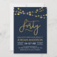 Convite de festas elegante com cordas de luz e a palavra "quarenta" em folha de ouro falsa contra fundo azul escuro. A placa inclui um padrão correspondente do lado traseiro. Veja outros itens correspondentes aqui https://www.zazzle.com/collections/strings_of_lights_faux_gold_celebration_collection-119311942951401241?rf=238364477188679314 Personalize-o substituindo o texto do espaço reservado para adicionar suas informações. Para obter mais opções, clique no botão "Personalizar". *Observe que a Marca d'água do Zazzle que aparece na visualização de zoom NÃO aparecerá no produto impresso final. © Rosewood e Citrus