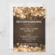 design de Convite de festas de Aquecimento Doméstico Elegante com Luzes de Peça Douradas, nomes personalizados e data e texto adicional. Imprima a sua família e amigos com este na moda e o design moderno. Totalmente personalizável! Fácil de usar e fácil de personalizar.