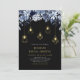 Convide seu convidado para o dia especial de comemoração com este belo chá de panela. Este sofisticado design apresenta lindas flores azuis e luzes de cordas douradas com fixações de luz geométrica. Você pode personalizar o texto e a cor do plano de fundo. Um convite perfeito para um chá de panela ou chá de casamento de inverno moderno.