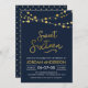 Moderno Sweet 16 Aniversário convidado com cordas de luz elegantes e a palavra "Doce Dezesseis" em ouro falso contra fundo azul. A placa inclui um padrão correspondente do lado traseiro. Veja outros itens correspondentes aqui https://www.zazzle.com/collections/strings_of_lights_faux_gold_celebration_collection-119311942951401241?rf=238364477188679314 Personalize-o substituindo o texto do espaço reservado para adicionar suas informações. Para obter mais opções, clique no botão "Personalizar". *Observe que a Marca d'água do Zazzle que aparece na visualização de zoom NÃO aparecerá no produto impresso final. © Rosewood e Citrus