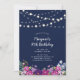 Celebre um dia especial com este moderno convite de aniversário floral. Este design apresenta luzes de cordas na moda e um buquê de flores sobre um fundo azul marinho. Você pode personalizar o texto para qualquer idade ou evento. ( 30, 40º, 50º, 60º, 70 Birthday, etc.) Mais convites e suprimentos de festas correspondentes estão disponíveis no meu compro BaraBomDesign.