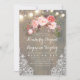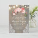 Os convites rústicos do casamento do celeiro/fazenda caracterizam um buquê floral cor-de-rosa surpreendente, a corda das luzes, o laço, e a madeira.