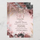 Ouro elegante tiara, luzes de cordas, brilho bokeh ombre e flores burgundy em fundo rosa. Para alterar os detalhes, clique em "Detalhes". Para mover o texto ou alterar o tamanho, a fonte ou a cor, clique em "Editar usando a Ferramenta de Design". Exibir o link de coleção nesta página para ver todos os itens correspondentes nesta bela
