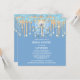 Belo ouro falso e pingos de brilho azul aquamarino e luzes de cordas balançosas parecem brilhar e brilhar contra um fundo azul no qual um arco azul céu bonito coberto por restos de ouro falso. O sentimento geral é elegante e chique. Este é ideal para o verão; primavera; inverno e chá de panela de outono ou eventos especiais de comemoração de aniversário. Sinta-se livre para excluir ou mover os modelos e alterar o tamanho e o estilo das fontes, se preferir.