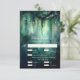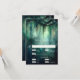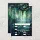 Uma ilustração com uma aquarela esbranquiçada da folhagem esmagadora em verde esmeralda, cintilante com luzes de fadas e poeira mágica, decora esta placa RSVP de casamento outono de verão com um tema de floresta encantado. Um cartão de resposta elegante e moderno para um casamento de conto de fadas. Perfeito para noivas que amam o cenário florestal de conto de fadas, o tema da floresta de fadas ou do jardim de fadas e esmeralda verde, mauve e ouro.