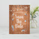 Projetado para coordenar com a nossa coleção de casamento Rustic Mason Jar String Lights. Apresentando as luzes de cordas acima de um jarro de mason artístico cheio de sua personalização, salve os detalhes de datas e as delicadas flores espalhadas. Projetado por Thisnotme©
