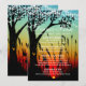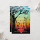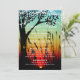 Luzes Rústicas de Árvore em Corda Menu de Jantar de Casamento ao Pôr do Sol para um casamento country à noite. O fundo é uma bela paisagem de pôr do sol com uma silhueta de uma árvore de carvalho com folhas em forma de coração e um coração esculpido no tronco da árvore. Há luzes em corda no topo do convite. Basta adicionar suas próprias opções de menu ou usar o botão "Personalizar" para mover as coisas e adicionar ou excluir linhas de texto.