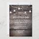 Convites de renovação de votos de aniversário com madeira de celeiro rústico - Fundo de tábuas de madeira de celeiro envelhecidas e desgastadas. No topo, são adornados com lanternas rústicas de campo, lanternas de jarro de Mason vintage e luzes de corda românticas ao ar livre. Lê 'Nós Ainda Fazemos' em letras estilo western com 'Renovação de Votos' abaixo e o ano de aniversário acima em letras curvas. Os detalhes da festa de aniversário, incluindo informações de RSVP, estão abaixo. A parte de trás tem um fundo de aparência de madeira correspondente. Nota: Todas as imagens são impressas. Use o botão Personalizar para alterar qualquer coisa - estilos de fonte, tamanhos, cores ou posicionamento. Convites elegantes para o campo para o verão ou outono, festa de aniversário rústica ao ar livre, tema de casamento de celeiro e