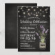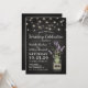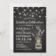 Mergulhe seus convidados no charme encantador do seu casamento no campo com nossos belos convites. Esses convites de casamento country chic misturam perfeitamente um fundo rústico de quadro-negro preto com luzes de cordão encantadoras para um toque cativante. O centro das atenções é um jarro de Mason transbordando de flores de lavanda roxa, envolto em aniagem e estampado com as iniciais do casal. Um modelo de casamento facilmente personalizável adiciona o toque final a esses convites únicos.