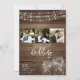 Defina o tom da celebração do seu país com esses itens de papelaria de casamento rústicos que apresentam um fundo de madeira quente, luzes de cordão brilhantes e encantadores potes de Mason. Perfeito para casamentos em celeiros, celebrações ao ar livre ou cerimônias noturnas aconchegantes, este design rústico cria uma atmosfera acolhedora e romântica. Personalize com seus nomes, detalhes do casamento e informações do evento para criar o convite / papelaria perfeito que reflete seu estilo rústico.