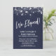 Sobre um fundo azul-marinho que pode ser alterado para qualquer cor de sua preferência, eu coloquei uma textura sutil de papel rústico transparente que adiciona profundidade e interesse ao papel. Em uma fonte moderna e casual de letra manuscrita, eu criei um gráfico para a palavra "We Eloped!". Na mesma fonte distinta, a palavra "Love" aparece no verso. Todo o restante do texto é totalmente editável; por favor, sinta-se à vontade para usar os campos do modelo para adicionar seus detalhes e clique para personalizar ainda mais se precisar redimensionar, reposicionar ou até mesmo alterar essa fonte. A parte superior do design é acentuada com vários gráficos diferentes que retratam uma variedade de estilos de luzes brilhantes cintilantes, adicionando um clima divertido e festivo para sua ocasião especial. Por favor, certifique-se de entrar em contato se tiver solicitações especiais ou precisar de ajuda com a personalização. //