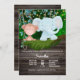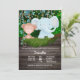 Uma ilustração adorável com aquarelas de um macaco bebê e de um elefante azul bebê pendurados nas patas sobre uma cerca horizontal de madeira castanha escura que tem uma camada de musgo sobre ela. Estão rodeados de vinhas penduradas e das folhas das árvores que, no fundo, têm bonito luzes cintilantes. Os modelos brancos podem ser personalizados para atender às suas necessidades. Perfeito para safari; festas de chás de fraldas temáticos de animais da selva e do jardim zoológico.