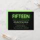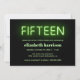 convite de aniversário moderno legal com "quinze" em luzes néon brilhantes e verdes limões brilhantes contra fundo preto.