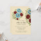 Uma design de convite de casamento incrível mostrando uma elegante aquarela Lyon Blue peonies, aliada a vermelho escuro e verde macio. A paleta de cores ousada, mas romântica, torna esse design ideal para casais que buscam um tema floral único e eterno. Perfeito para casamentos.