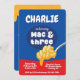 Convites Mac & Three Macaroni e aniversário de 3 anos de Qu