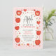 Aniversário do outono "Apple of Our Eye", com maçãs bonitinhas, corações amorosos e elementos florais em fundo rosa e branco, dando-lhe um olhar bonito e moderno. Você pode personalizar isso facilmente com seus detalhes.