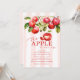 Celebre a chegada do seu pequeno com o convite de chá de fraldas "Apple to Our Eye". Esta charmosa design apresenta deliciosas maçãs vermelhas em galhos, complementadas por uma maçã branca com um corte cardíaco, todas colocadas sobre um fundo de listras cor-de-rosa macia. Perfeito para um encontro doce e memorável, este convite dá o tom para uma celebração alegre cheia de amor e riso. Torne o seu evento inesquecível convidando seus convidados com este convite encantador e animador.