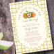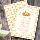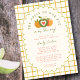 Celebre o seu pequeno convite de chá de fraldas de outono com o doce e sazonal "A Maçã do Nosso Olho", com um fundo cor de laranja quente e gingham verde e um charmoso trio de maçãs verdes e laranja acentuadas com um coração. Perfeito para uma comemoração neutra em termos de gênero ou para um chá para um menino ou uma menina, este design combina cores confortáveis no outono com um tema novo e brincalhão de pomares. Um quadro dimensionado destaca seus detalhes personalizados de eventos, enquanto a paleta vibrante de colheita define um tom alegre. Ideal para fazendas, pomares, ou encontros de queda rústica, este convite é uma maneira deliciosa de honrar sua mais nova maçã do olho.