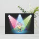 Esta design é de um macaco em holofotes. O macaco está vestido e feito em estilo cartoon e parece estar fazendo um show. O dinheiro está em palco sob alguns holofotes muito coloridos. Este macaco nos holofotes design parece excelente nestes convites