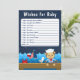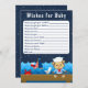 Este belo e divertido cartão de bebê apresenta um macaco-marinheiro náutico num pavimento de madeira com uma gaivota e um caranguejo. Ao fundo há um pássaro vermelho giro em um veleiro, ondas oceânicas e um marinho azul estrelado céu noturno. O texto combina fontes em negrito e sem serifa para uma aparência na moda e moderna. Isto é perfeito para um chá de fraldas temático náutico.