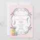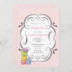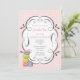Um convite para chic bridal com um talento francês. design de aquarela rico de macarões franceses doces e deliciosos empilhados uns sobre os outros. Bonito cores pastéis - roxo, verde limão, amarelo, rosa e azul. Definido em um fundo de bolinhas rosa. As informações da festa de noiva são definidas como dentro a quadro decorativo do rico com rico florescente.