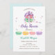 Este cartão de convite pastel é perfeito para uma festa de chá de fraldas em francês ou em Paris! Os convites apresentam cookies macaron em cores de água pastel.