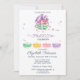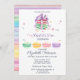 Este cartão de convite pastel é perfeito para uma doce festa de aniversário francesa ou parisiense de 16 anos! Os convites apresentam cookies macaron em cores de água pastel.