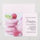 Convites Macarons Rosa com Aniversário de Frambosas Vermelh