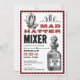 Mad Hatter Mixer convida no tabuleiro vermelho e preto com ilustrações vintage. Personalize este design alterando os detalhes.