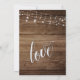 Este cartão de recepção de casamento elaborado mas rústico apresenta uma imagem de fundo texturizado castanho quente que retrata tábuas de madeira sobrepostas com cordas de luzes cintilantes brancas. Usei uma fonte de letra cursiva elegante e ondulada para renderizar gráficos que retratam as palavras "nos casamos"; no verso coloquei a palavra "amor". O seu próprio texto é facilmente adicionado para personalizar este modelo o quanto desejar. Use os campos do modelo para simplesmente inserir seus detalhes pessoais e clique para personalizar ainda mais se desejar reposicionar qualquer uma das camadas desbloqueadas. Por favor, não hesite em entrar em contato comigo para pedidos especiais ou para obter ajuda com a personalização.