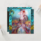 Design elegante, colorido, elegante e caprichosa em cores brilhantes, fuchsia, teal, turquase, brancas com uma pedra brilhante tridimensional da safira.Linda mulher loura-esbranquiçada, azul, rosa e brilhante tecidos de ouro barroco com penas e rosa vermelha. A aquarela original e a pintura acrílica com folha de ouro e cores iridescentes na canvas.Este cartão legal e artístico é perfeito para casamentos, cerimônias nupciais, chás de panela, doce 16,festas de aniversário quinceanera, bolas de dança em fantasia, noivados românticos, salvar os anúncios de data, natal, festas de férias, reuniões familiares, cocktails, celebrações de dia do ano novo aniversários, reuniões, concertos, recital ou qualquer evento que você queira.