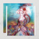 Design elegante, colorido, elegante e caprichosa em cores claras, fuchsia, teal, pardo, brancas. Linda mulher loura-esbranquiçada sofisticada, tecidos de ouro azul, rosa e cintilante de um traje barroco com penas e uma rosa vermelha. A aquarela original e a pintura acrílica com folha de ouro e cores iridescentes na canvas.Este cartão legal e artístico é perfeito para casamentos, cerimônias nupciais, chás de panela, doce 16,festas de aniversário quinceanera, bolas de dança em fantasia, noivados românticos, salvar os anúncios de data, natal, festas de férias, reuniões familiares, cocktails, celebrações de dia do ano novo aniversários, reuniões, concertos, recital ou qualquer evento que você queira.