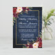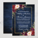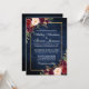 Rustic Blue Wood Burgundy Marsala Watercolor Frame Floral Dourado Convite Para Casamento