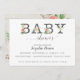 A tipografia de texto com aspersão floral de aquarela acentua esta simples e moderna design. No verso está um fundo de madeira rústico, mas elegante, e flores nos cantos para um chá elegante e eterno de menina. Um conjunto completo de produtos está disponível para corresponder. Copyright, Audrey Jeanne Roberts.