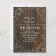 Um convite de casamento floral com o hálito de um bebê da fronteira. O fundo é uma foto de lenha. Personalize o texto.